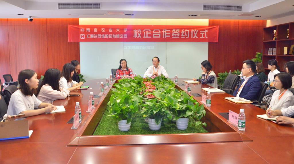 5月25日,经济管理学院与汇通达网络股份有限公司共建“就业创业实习基地”与“社会实践基地”,签约授牌仪式在汇通达网络股份有限公司总部举行。汇通达网络股份有限公司副总裁邢建虹、人力资源中心副总监高娟、全渠道运营中心副总监毛宜军、人力资源中心总监助理宋艳、人力资源中心招聘经理赵静等,与经济管理学院党委副书记卢忠菊,校就业办王剑虹老师,3488bet36365体育在线辅导员李扬、郑琼婷及部分学生进行了座谈交流,并签署共建协议。